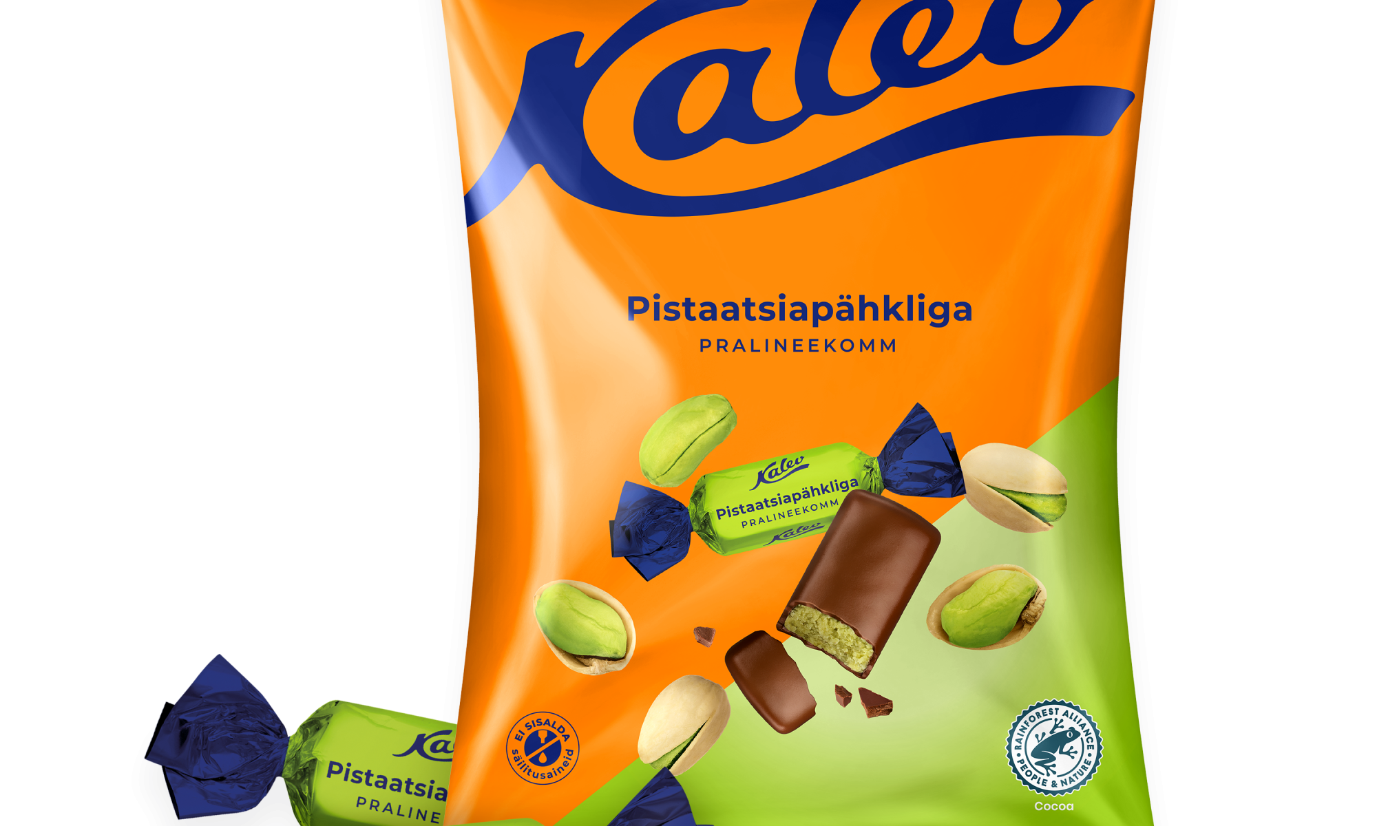 Pistaatsiapähkliga pralineekomm on delikaatse maitsega, selles on tunda õrna naturaalset pähklimaitset, mida raamib oivaliselt ehe šokolaadiglasuur. Pakis on ligikaudu 15 kommi.
